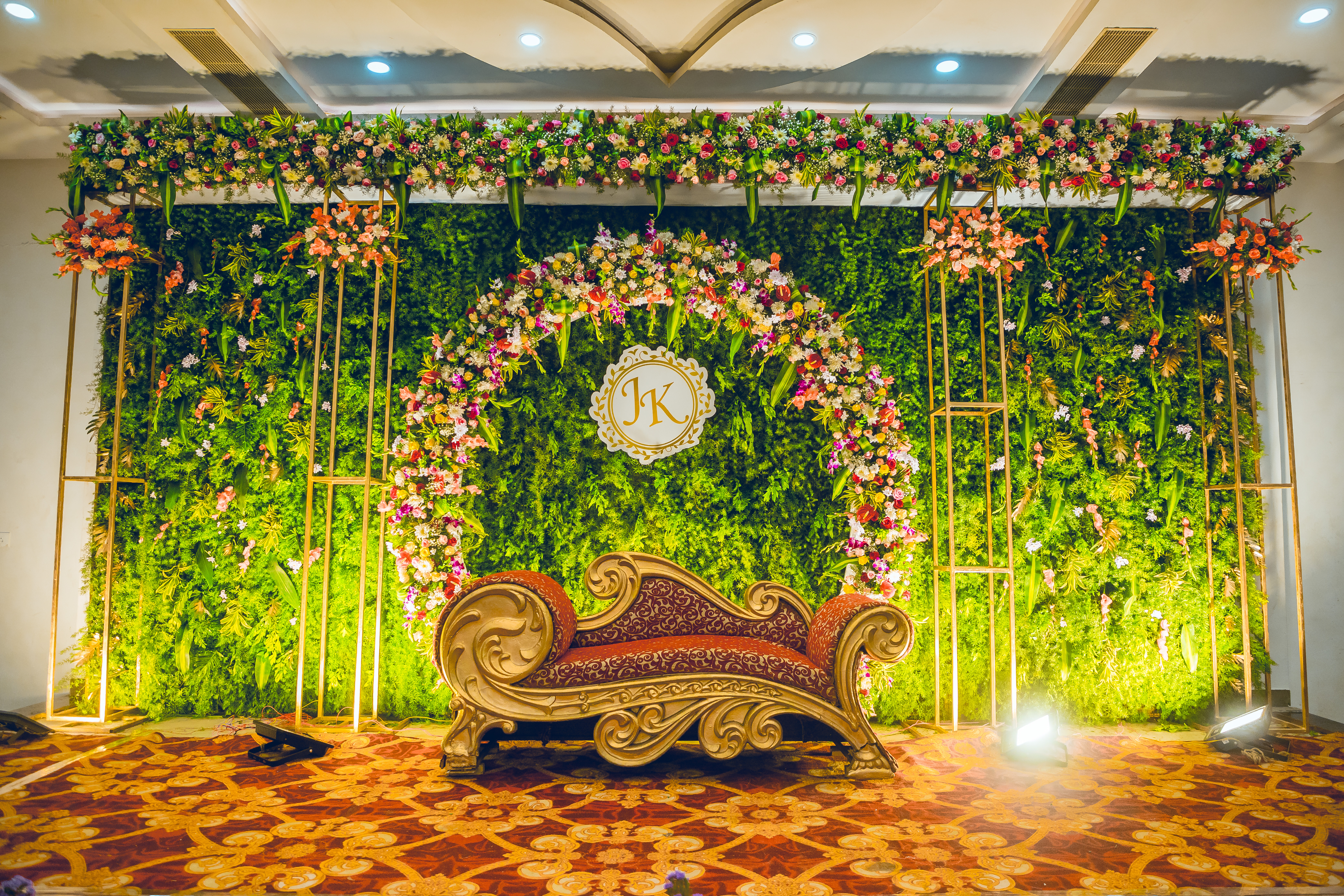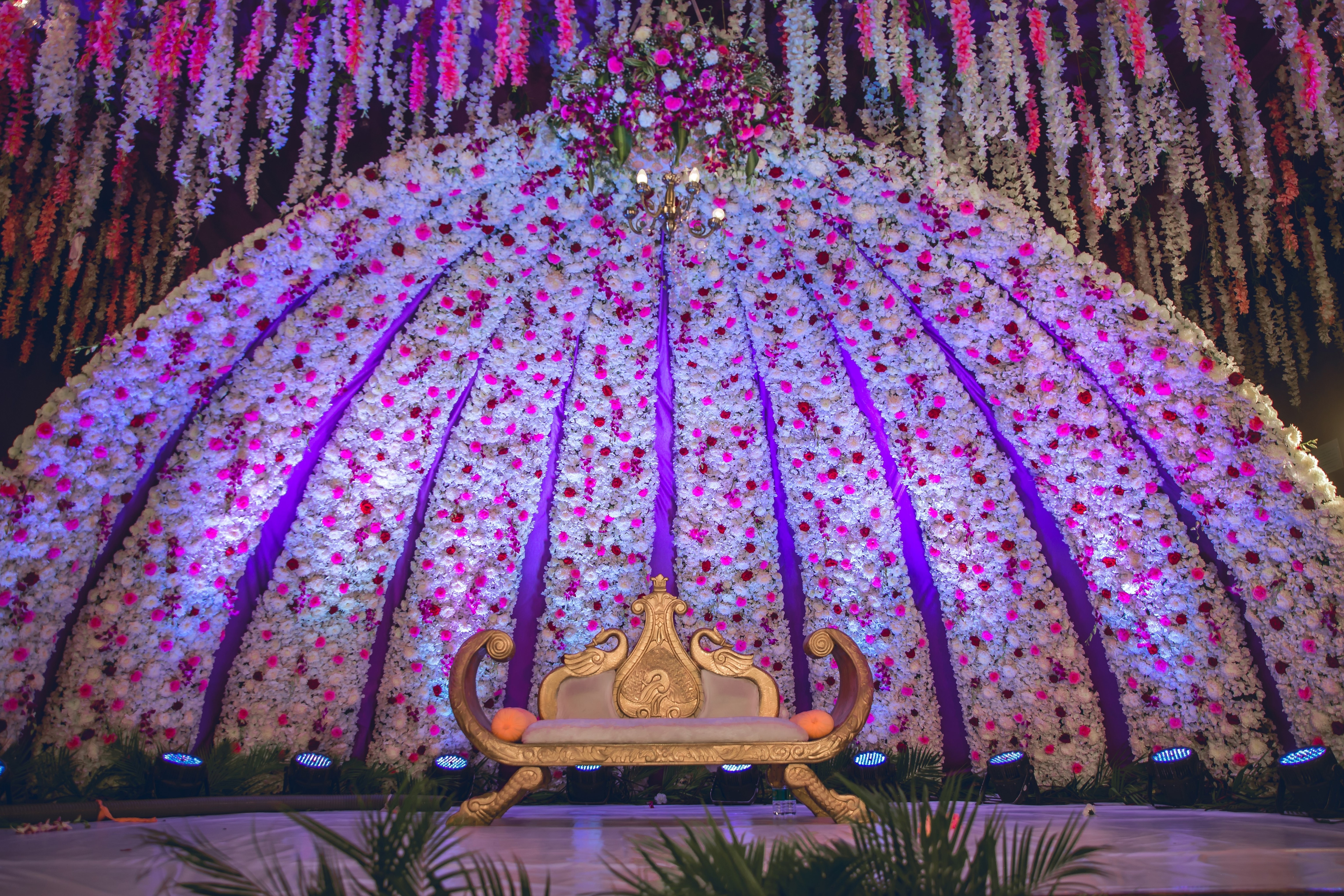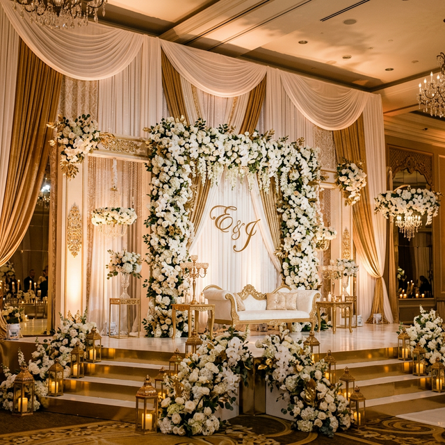 Elegant and grand wedding event planning with stunning decorations, floral arrangements, lighting, and stage setups to make your special day truly unforgettable.